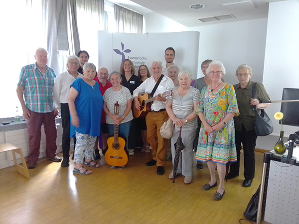 Studierende hatten unsere Gmoi eingeladen, an ihrem Projekt „Heimatgefühl – leben, erleben, weitergeben“ mitzuwirken. Dazu besuchten uns die jungen Leute mehrmals in unserer Singstunde am Freitag Nachmittag im Haus der Heimat. Gespräche wurden geführt, Interviews aufgenommen, geplaudert und gesungen. Am 26. Juni 2025 wurde dann das Projekt in der Hochschule vorgestellt. Es hatten sich auch die Gruppen der Siebenbürger Sachsen und der Deutschen aus Russland daran beteiligt. Jede Gruppe sang ein Lied in ihrer Mundart und ein Heimatlied in Schriftdeutsch. Die Studierenden hatten alle Aufnahmen, die in den Gruppen entstanden waren, zu einem Kurzfilm zusammengestellt und jede Gruppe konnte sich mit einem kleinen Infostand und typischem Gebäck ihrer Heimat präsentieren.
